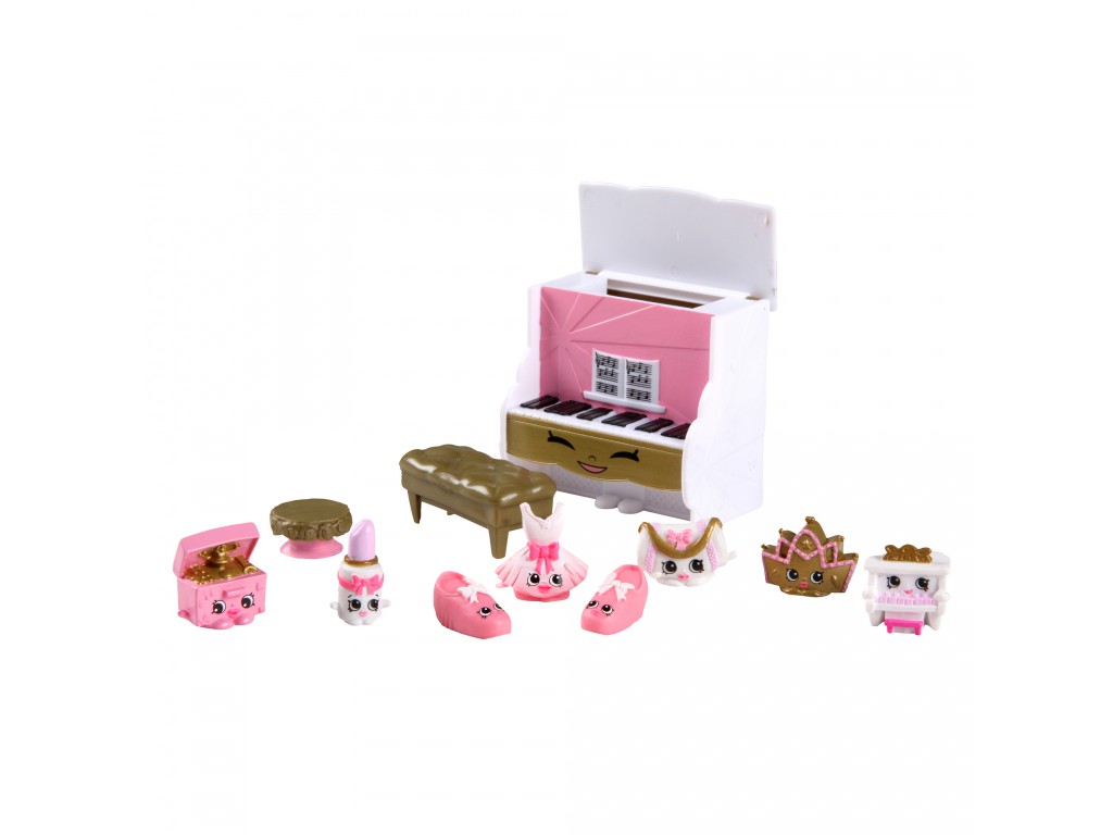 В комплекте вы найдете 8 эксклюзивных фигурок (балетная пачка, пуанты и тому подобное), пианино с игривой мордашкой, музыкальный стул и подставку для тиары. Все предметы изготовлены из высококачественного пластика и выполнены в розовых тонах.