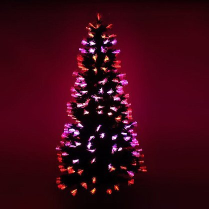 Светящаяся искусственная елка высотой 120 см. Ветки елочки сделаны из пленки ПВХ, кончики - из оптоволокна. Имеет несколько режимов подсветки. Прекрасно смотрится как наряженной, так и без игрушек. Ствол сделан из металла. Размещается на металлической подставке. Меняются режимы.