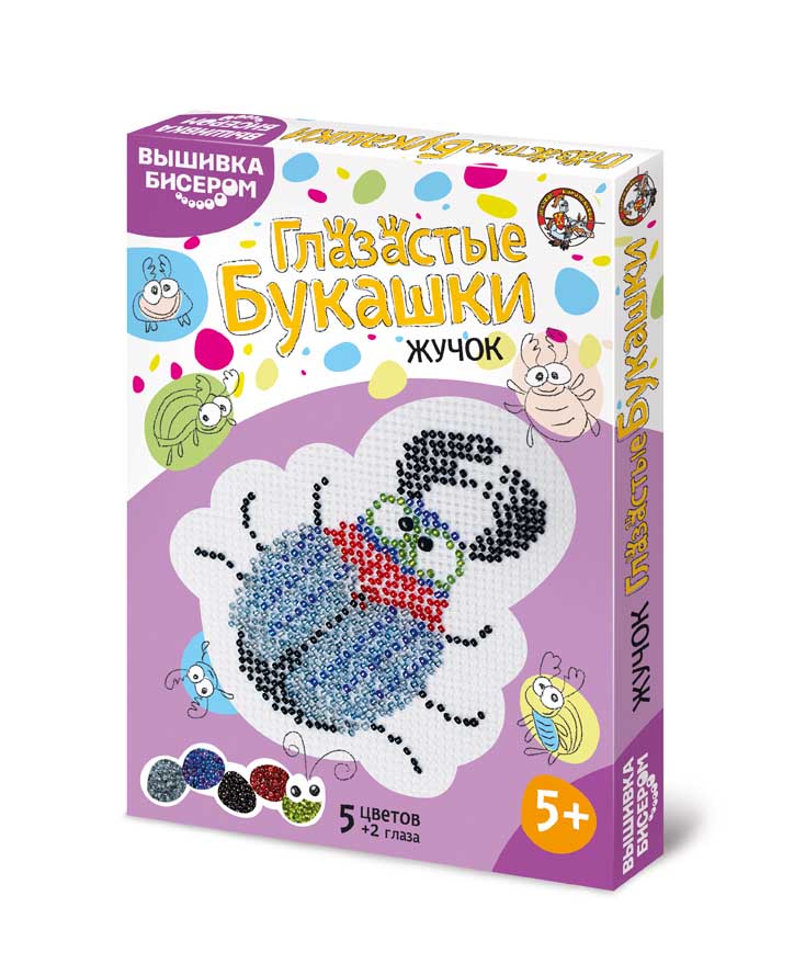 Смешной жук-рогач с круглыми большими глазками выглядит очень забавно. Такая поделка из бисера сможет стать отличным подарком или украшением детской. Для того, чтобы вышить смешное насекомое не требуется много времени. Благодаря тому,что картинка совсем не большая, результат будет виден практически сразу и очень обрадует ребенка. Небольшой набор для вышивания включает в себя все необходимое, что может понадобиться в процессе создания красивой поделки: удобная белая канва, пять разноцветных видов бисера, схема для вышивки, а также маленькие глазки для насекомого.
