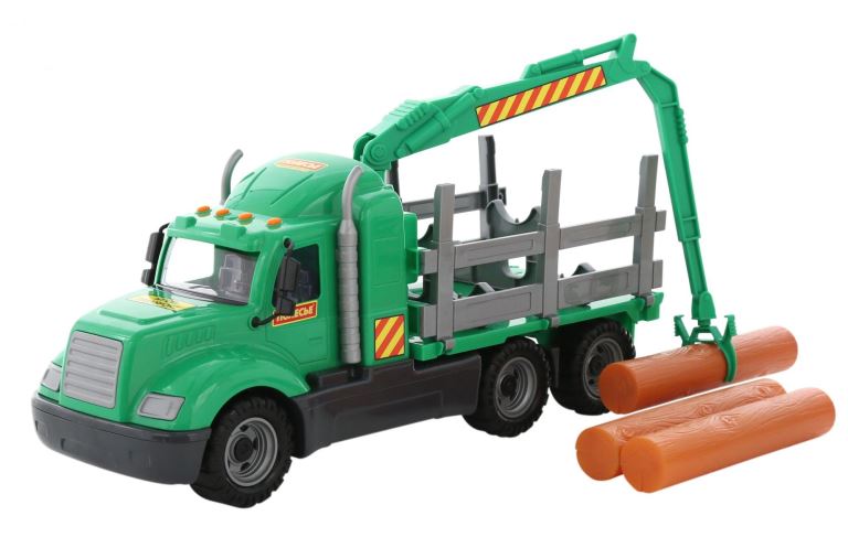 Яркий автомобиль лесовоз, имеющий современный дизайн, станет любимой игрушкой любого ребенка. На нем малыш сможет перевозить пластиковые бревна, входящие в комплект игрушки, и любые другие предметы. Игра с машинкой будет стимулировать развитие воображения и мелкой моторики, поспособствует улучшению физической формы ребенка. Автомобиль производится из высококачественного прочного пластика, поэтому он порадует длительной службой. В кузове грузовика имеется подъемный механизм. Машинка отличается средними размерами, поэтому подойдет для игры дома, в детском саду и на прогулке. Она рекомендована детям, старше 3 лет. Продается автомобиль в сеточке.